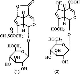 | 释义 | 鸡屎藤 【名称出处】:《生草药性备要》 【概况】: 异名 女青(《本经》),皆治藤(《纲目拾遗》),牛皮冻(《植物名实图考》),毛葫芦(《岭南采药录》),臭藤(《天宝本草》)。 基源 为茜草科鸡屎藤属植物鸡屎藤的干燥全株。鸡屎藤属全世界有50多种;中国有10多种,其中药用的有3种。 原植物 鸡屎藤Paederia scandens(Lour.)Merr.,又名鸡矢藤(《中国药典》)。 历史 本品以“女青”之名始载于《本经》,其描述为“女青,味辛平,主蛊毒,逐邪恶气,杀鬼温疟,辟不祥,一名雀瓢……名医曰,蛇衔根也,生朱崖,八月采,阴干……。”《纲目》描述“女青,本经下品,释名雀瓢,……生朱崖,八月采,阴干……叶似萝摩,两叶相对……茎叶并臭……实黑……。”《纲目拾遗》以“皆治藤”之名描述本品曰“蔓延墙壁间,长丈余,叶似泥藤,中暑者,以根叶作粉食之,虚损者,杂猪胃煮服。”《植物名实图考》以“臭皮藤”、“牛皮冻”之名描述本品,谓“臭皮藤”曰“牛皮冻,湖南园圃林薄极多。蔓生绿茎,长叶如腊梅花叶,浓绿光亮。 叶间秋开白筩子花,小瓣五出,微卷向外,黄紫色。结青实有汁……”,书中又描述了一种称“鸡矢藤”的草药,从描述看似与本品相近,但附图的叶互生,并非本品。又据1932年,肖步丹撰《岭南采药录》中载“皆治藤”别名“鸡屎藤、毛葫芦”,并作了药用与形态等描述。从以上各家对本品的详细描述来看,实为现代被普遍利用的“鸡屎藤”。 形态 藤本,茎长3~5m,无毛或近无毛。叶对生,近革质,形状变化大,卵形、卵状长圆形至披针形,长5~15cm,宽1~6cm,顶端急尖或渐尖,基部圆、截平或楔形,有时浅心形,两面无毛或近无毛,有时背面脉腋内有束毛;侧脉4~6对,纤细;叶柄长1.5~7cm;托叶长3~5mm,无毛。 圆锥花序式的聚伞花序腋生和顶生,扩展,分枝对生,末次分枝上著生的花常呈蝎尾状排列;小苞片披针形,长约2mm,无毛;花浅紫色,无花梗或具短花梗;萼管陀螺形,长约1~1.2mm,萼檐5裂,裂片三角形,长0.8~1mm;花冠管长7~10mm,外面被粉状柔毛,内面被绒毛,花冠裂片5,长1~2mm,顶端急尖而直;花丝长短不等,花药背著。果球形,成熟时杆黄色,有光泽,平滑,直径5~7mm,顶冠以宿存的萼檐和花盘;小坚果无翅,浅黑色。花期5~8月,果期9~10月。(图见《中药志》.第4卷.第2版.428页.图425.照片112) 生境与分布 生于低海拔至中海拔的山谷溪边、村边、旷野、山坡灌丛中,常缠绕于灌木上。 分布于长江流域及其以南各地。日本、印度、中南半岛至印度尼西亚也有分布。 。【生药】:栽培 宜在温暖湿润气候土层深厚、土质疏松肥沃而湿润的砂质壤土种植。 用种子繁殖,于3~4月播种,按行株距各33cm开浅穴点播,每穴播种子10粒左右,播后覆薄土,保持土壤湿润。或行扦插繁殖,取二年生茎藤,剪成20~30cm长,有3节以上的播条,直接扦插于大田。种子发芽出苗后,结合松土除草,分次间苗,每穴留苗2~3株,生长中追施人畜粪水1~2次。茎藤长30cm以上时,应插设支柱,以供攀援生长。 9~10月收割后,结合中耕除草施堆肥,越冬。虫害蚜虫,用乐果防治。 采集 夏季采收全草,洗净,晒干。药材产于长江流域及以南各地区。 鉴别 性状 茎扁圆柱形,直径2~5mm;老茎灰白色,有纵皱纹或横裂纹,嫩茎黑褐色,被柔毛;质韧,不易折断,折断面纤维性,灰白色或浅绿色。叶对生,有柄,多卷缩或破碎,完整叶片展平呈卵形或椭圆状披针形,长5~10cm,宽3~6cm,先端尖,基部圆形,全缘,两面被柔毛或仅下表面被毛,主脉明显。气特异,味甘、涩。以叶多、气浓者为佳。 显微 嫩茎横切面:表皮细胞1列,外壁稍增厚,有角质层。皮层菲薄,由4~7列细胞组成,外侧1~3列为厚角细胞;内皮层明显。中柱鞘纤维2~3列成环。 维管束外韧型。 形成层不明显。韧皮部有油细胞,长圆形,长约60μm,直径约38μm;有的细胞含草酸钙针晶束。 木质部导管常数个至十数个相聚成12~14个导管群,导管周围木纤维众多,木薄壁细胞稀少。髓部大,长圆形。 (图见《中药志》.第4册.第2版.429页.图426) 老茎(直径约10mm)横切面:横切面圆形;中柱鞘纤维稀少,常单个稀疏散在;韧皮部较发达,木质部呈圆环形,髓部扁圆形,略偏心性。 叶表面观:表皮细胞多角形,垂周壁较平直,平周壁有明显角质层纹理。 上下表皮有气孔,平轴式,副卫细胞2个,较狭长,宽8~15~53μm,长43~62μm。海绵组织布有含晶细胞,内含草酸钙针晶束,长达150μm。 叶脉部常有非腺毛,长50~500μm,由3~15个细胞组成,壁具角质纹理。(图见《中药志》.第4册.第2版.430页.图428) 理化 取样品粉末2g,加乙醇20ml,回流1小时,滤过,滤液蒸干,加水2ml,再滤过,滤液用正丁醇10ml萃取,分取正丁醇层,蒸去正丁醇,加甲醇1ml溶解,点于硅胶G板上,以氯仿-甲醇-甲酸(85 1.5∶0.5)为展开剂,展距15cm,喷茴香醛-浓硫酸-冰乙酸(0.5∶1∶50)试液,加热显色。(图见《中药志》.第4册.第2版.431页.图429) 贮藏 置通风干燥处,防霉。 。【化学】: 含鸡屎藤甙(Paederoside)(1)、鸡屎藤次甙(Scandoside)(2)、车叶草甙(Asperuloside)[1~3],γ-谷甾醇[4]。 叶含熊果酚甙(Arbutin)0.86%[5],挥发油[6]。 附 果实含熊果甙约0.69%,及齐墩果酸、三十六烷、氢醌[5]。