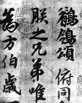 | 释义 | 鹡鸰颂 【作品赏析】: 此帖书法萧散洒落,外柔内刚。 玄宗书法诣颇深,在唐代帝王中与太宗齐名。他运笔精到,轻入重敛,笔实墨沉,神气完足,遒劲而舒展。多用侧锋。笔画之间的过渡常用连笔,虚入虚出;字与字之间很少牵连,但相向点画顾盼俯仰,笔断意连。 一挑一趯,刚柔相济。 黄山谷称:“玄宗书斑斑犹有祖父之风”。 将此帖与太宗《温泉铭》、《晋祠铭》对比,确能见其相承关系,但太宗清劲,玄宗遒婉,风格有异。。