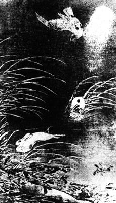 | 释义 | 鹰兔图 【作品赏析】: 张路是位才情奔放的画家。 他在仕途上的失意,促使他“颓唐自放”。尽管“缙绅先生皆乐与之游”,并能以画名天下,但始终过著“门巷萧然”的清贫生活。明人朱谋垔《画史会要》说他“用墨虽佳,未脱院体”。 这就是说,他的画虽然从总体上趋于狂放,但在传统上仍然与林良、吕纪等人的院体画一脉相承。 此幅《鹰兔图》便是其一。 《鹰兔图》画得非常生动。在茫茫大野中,一只雄鹰意外地发现猎物,便陡然改变飞行方向,蜷爪振翅,掉转头来,对准白兔向下俯冲。白兔似乎预感到大祸临头,仓皇地向草丛中逃窜。旁边两只惊飞的小鸟也机警地飞向远方。 杂草被风刮得倒向一边,恰与白兔逃窜的方向相对,更使人感到小兔腾跳的速度迅疾若飞,并有可能逃脱这场劫难。总之,画面鹰兔形象栩栩如生,神气十足,充满了勃勃生机。此作在画法上并未十分放笔,而是著意于形神兼备的精妙刻画上,运笔宛转且有跌宕之势,风格雄健、潇洒、灵巧,显然受到宋元粗笔水墨一派及吕纪、林良等人水墨写意画风的影响。 在背景的渲染方面,也能做到明暗适度,尽量表现自然界那种丰富微妙的变化。不消说,这是张路禽鸟题材作品中不可多得的力作。 。