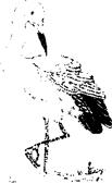 《豳风·东山》三章:“鹳鸣于垤,妇叹于室。”毛《传》:“垤(dié),蚁冢也。”郑《笺》:“鹳,水鸟也,将阴雨则鸣。”陆玑《草木疏》:“鹳,鹳雀也,似鸿而大,长颈,赤喙,白身,赤尾翅。树上作巢,大如车轮,卵如三升杯。泥其巢,一傍为池。”《本草纲目》李时珍〔集解〕:“鹳似鹤而顶不丹,长颈赤喙,色灰白,翅尾俱黑。多巢于高木。