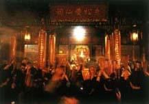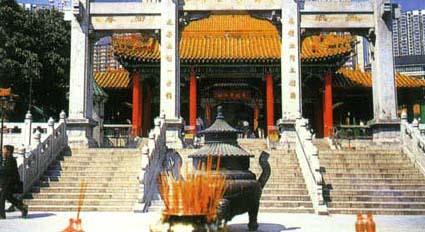 | 释义 | 黄大仙祠 黄大仙祠位于九龙翔道黄大仙上村,是香港最负盛名的道教场所。 相传黄大仙原名初平,小时放羊,15岁起学道。40年后其兄初起找到他,见他能指石变羊,遂从弟学道,兄弟双双成仙,隐于赤松山下。本世纪初,梁仁庵从广东西樵山普庆祖坛奉接黄大仙师宝像来港,在九龙山下择地筑园,即赤松黄大仙祠,成为香港地区规模最大的宗教场所之一。 黄大仙祠建筑宏伟,金碧辉煌,其大雄宝殿雕梁画栋,飞檐黄瓦,殿内香烟缭绕,善男信女顶礼膜拜,虔诚至极。 此外,黄大仙祠内还供奉大成至圣先师孔子画像,供奉燃灯古佛,祠内藏有儒道释各家经典,可谓“三教九流”,“和平共处”。