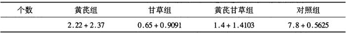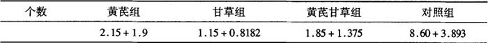各组两两比较结果见表12-17-2,经q检验。 四个样本均数两两比较表明,用药组间对溃疡的抑制作用无明显差异(黄芪与甘草及两药合剂,甘草与两药合剂,P>0.05),而各用药组与对照组相比对两种模型所致溃疡都有明显的抑制作用(P<0.01),见表12-17-3。 表12-17-3 四组两两溃疡个数比较(应激型)
