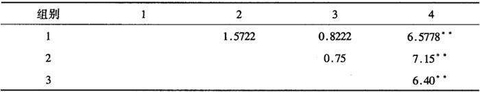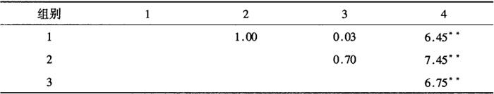 用药组与对照组比较:* *P<0.01 表12-17-4 四组两两溃疡个数比较(消炎痛型)