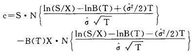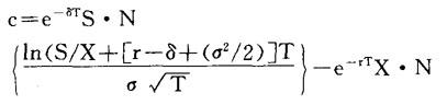 其中,T:从现在距到期日的时间差,即(t*-t),t:现在的日期,t*:期权的到期日。c:一个即期时间为t的欧式看涨期权价格。S:t时的股票价格。 X:期权的执行价格。 B:面值为一美元的无息债券价格。N:标准正态分布函数,N{q}= 上式为欧式期权解,默顿认为:如果股票在期权有效期内不分红,则上述解也可适用于美式期权。 2.默顿的按比例分红模型 默顿假定红利是连续支付的,即