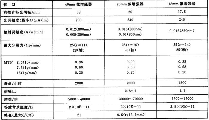 表7-12 美国部分像增强器军标标准