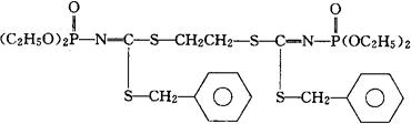 C26H38N2O6P2S4=664.78 CAS-22012-72-2 碳亚氨基二硫代酸,(二乙氧基氧膦基)-,1,2-乙二基双(苯甲基)酯。 Carbonimidodithioic acid,(diethoxyphosphinyl)-1,2-ethanediyl bis(phenylmethyl)ester. 磷酰基二硫代亚氨基碳酸亚乙基二苄基P,P,P′,P′-四乙酯。 Phosphonodithioimidocarbonic acid ethylene dibenzyl P,P,P′,P′-tetraethyl ester. 抗蠕虫药。 Zilantel,Cl-64,976. INN,USAN.  |
