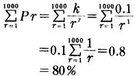在按频率递减顺序排列的频率词典中,词的序号和词的频率之间存在著一定的数量关系。可以公式化为:。其中r为词的序号;k和γ都是常数;Pr则是序号为r的词的频率。美国语文学家齐夫(G.K.Zipf)通过实验测出γ=1,K=0.1。例如,如果词的序号为50,那么,根据公式得出:0.002。该公式称为齐夫定律。由齐夫定律可知,如果频率词典包含数十万个词,那么,其中头一千个最常用的词占该语言各种文章中全部出现的词百分之八十,因为