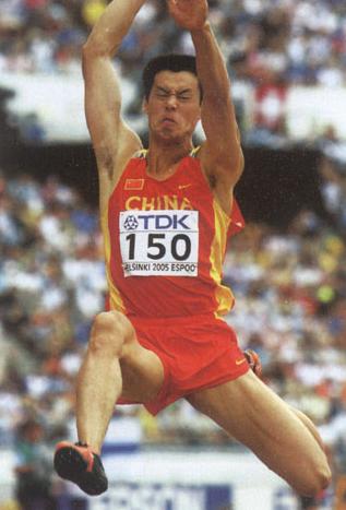 齐海峰(1983~ ),田径运动员。 自2001年参加世界大学生运动会起,已经3次在比赛中达到8000分以上,成为中国第一位超8000分大关的十项全能运动员。齐海峰的特点是作风硬,跑、跳项目相对突出。齐海峰的出现将中国男子十项全能在国际体坛的地位提高了一大步。 齐海峰在2001年获全国田径锦标赛男子十项全能冠军;同年获世界大学生运动会冠军。 2002年获全国田径锦标赛男子十项全能冠军,并以8030分打破了自己保持的该项目8021分的亚洲青年纪录和全国纪录。2003年获世界田径锦标赛第7名,这是40多年来中国选手首次闯入世界大赛男子十项全能的前8名。 2006年亚运会田径男子十项全能比赛中,以8041分夺得金牌。  2005年8月9日,齐海峰在田径世锦赛男子十项全能跳远比赛中。 |