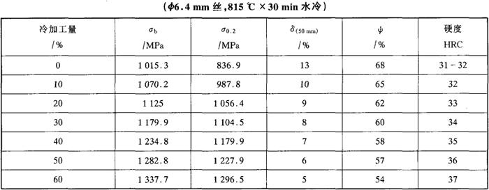 表5-46 冷加工对时效钢丝室温力学性能的影响