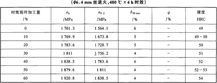 表5-45 00Cr12Ni8Cu2TiNb的冷加工强化