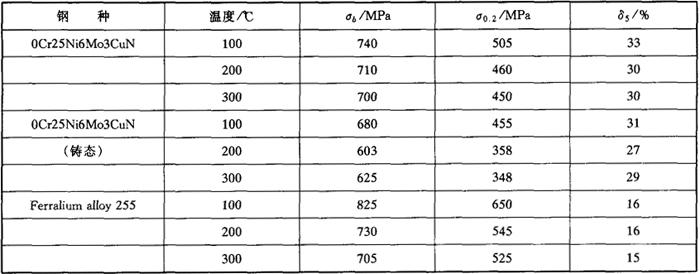 表4-67 0Cr25Ni6Mo3CuN钢的高温力学性能
