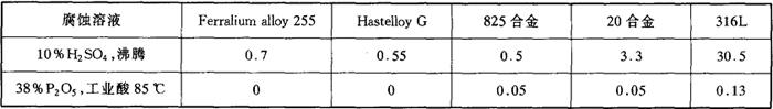 e.均匀腐蚀 Ferralium alloy 255在不同溶液中与其他钢种腐蚀速率的对比见表D4-77。 表4-77 几种钢在不同溶液中的腐蚀速率对比(mm/a)