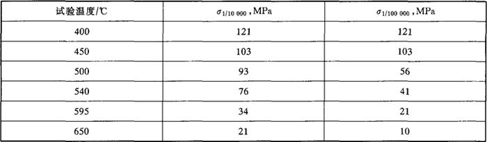 表3-9 1Cr13钢的蠕变强度(热处理同表3-8)
