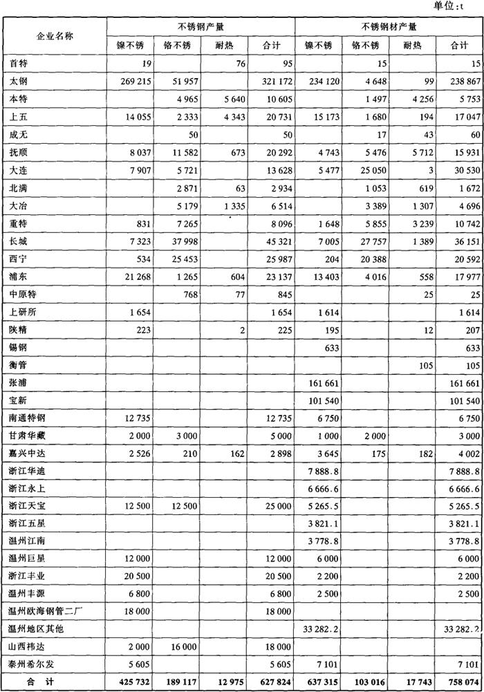 注:张浦、宝新263201t冷轧薄板为进口料加工,温州地区有一部分管材属外购料加工。