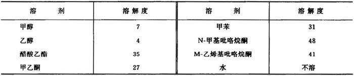 表3-24 2-氰基3,3-二苯基丙烯酸乙酯的溶解度(重量%,30℃)