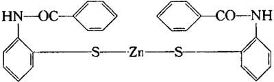 | 释义 | 2-苯甲酰氨基硫酚锌盐 【结构式】: