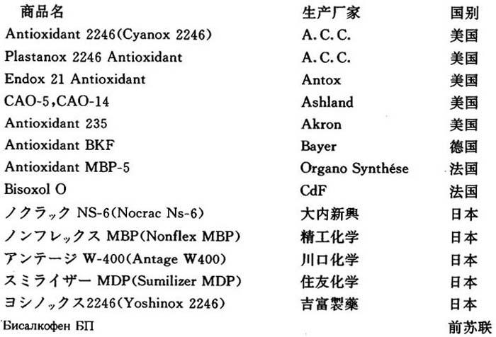 表4-5 2,2′-甲撑双(4甲基-6-叔丁基苯酚)的溶解度(g/100g溶剂,25℃)