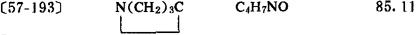 [丁内酰胺;α-酮吡咯啶;α-吡咯酮;δ-Butyrolactam;α-Ketopyrrolidine;2-Pyrrolidinone] GW 61085 TW 84092 M.I.11,8027 性状 无色结晶。在25℃以上为液体。能与水、醇、醚、氯仿、苯、乙酸乙酯和二硫化碳混溶。mp 23-25℃;bp10 127-130℃/1.333kPa; 注意事项 该品有毒。应密封于阴凉处保存。