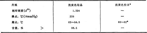 性能 为白至淡黄色结晶粉末。熔点63~64.5℃(试剂66℃)。相对密度(
