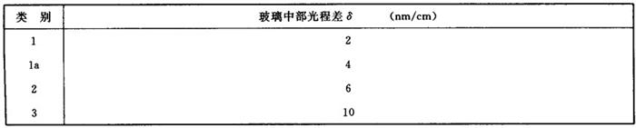 2.2.3.2 玻璃的应力双折射以其距边缘5%直径或边长处单位厚度上的最大光程差δmax(nm/cm)表示时,按表1-9分为4类。 表1-9
