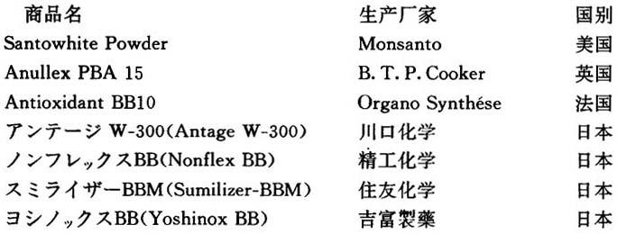 *抗氧剂总用量为1%以下。 **抗氧剂总量。 国外生产厂