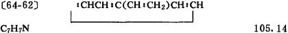 [4-乙烯基氮苯;4-Ethenyl pyridine;4-Pyridyl ethylene;γ-Vinyl pyridlne] GW 61840 TW 84091 性状 液体。能溶于热水和热醇,微溶于水和醚。bp12 58-61℃/1.600kPa; 注意事项 该品易燃。有毒.吸入或吞入时有毒害。对眼睛、皮肤和呼吸系统有刺激性。使用时应避免吸入本品的蒸气和飞沫。避免与眼睛及皮肤接触。应于0-4℃保存。