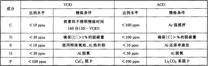 表3-5 AOD炉和VOD炉的高纯化精炼