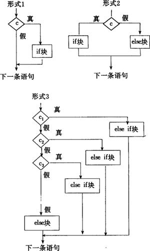 其中e为一个关系表达式或逻辑表达式,if块,else if块,else块都可以是一组语句。每个块IF语句中的IF和END IF必须配对。 语句功能见图3.2.2-1。