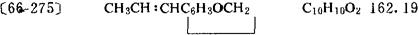 [5-丙烯基-1,3-苯并二 M.I.11,5112 性状 无色液体。有茴香气味。能溶于醇、醚及苯。bp 253℃;Fp 210℉(108℃,闭杯);d 1.117-1.120;n 1.576。 注意事项 该品吸入或与皮肤接触时极毒。使用时应穿戴适当的防护服,防护镜或面罩,避免吸入本品的气体。应密封避光保存