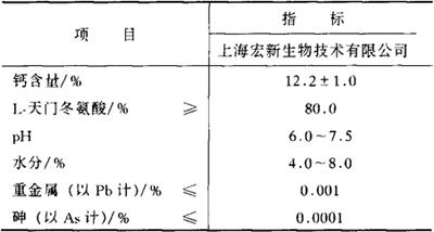 C4H5O4NCa 相对分子质量 171.10 性状 本品为白色粉末,无臭,具吸湿性,易溶于水,难溶于有机溶剂,水溶液呈中性。 制法 由L-天门冬氨酸与钙盐以等摩尔反应制取。 质量标准