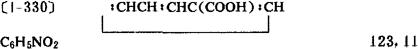 [吡啶-3-羧酸;维生素B5;3-氮苯酸;烟碱酸;尼古丁酸;Niacin;Pyridine-3-carboxylic acid;Vitamin B5;Pellagrapreventive factor;3-Picolinic acid] M.I.11,6435 性状 白色针状结晶。味酸。易溶于沸水、沸醇,溶于苛性碱、碳酸钠溶液,不溶于醚和酯类。mp 233-236℃ 注意事项 该品应密封避光保存。