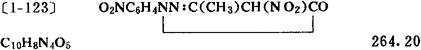 [4-硝基-3-甲基-1-(对硝基苯)-5-吡唑啉酮;3-Methyl-4-nitro-1-(ρ-nitro phenyl)-2-pyrazolin-5-one] 性状 棕黄色结晶。溶于乙醇、三氯甲烷、乙醚和氢氧化碱溶液。mp120℃。 注意事项 使用时应避免吸入本品的灰尘,避免与眼睛及皮肤接触。