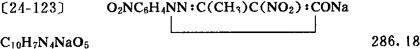 [4-硝基-3-甲基-1-(对硝基苯)-5-吡唑啉酮钠盐;3-Methyl4-nitro-1-(ρ-nitro phenyl)-5-pyrazolon sodium salt;Sodium picrolonate] 性状 黄色针状结晶。溶于水。