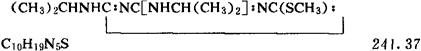 [2-甲硫基-4,6-二(异丙胺基)均三氮苯;A1114;N,N′-Bis(1-methylethyl)-6-methylthio-1,3,5-triazine-2,4-diamine;Prometrex;2,4-Bis-(iso-propyl amino)-6-(methylthio)-Striazine;Caparol;G 34161;Gesagard;Primatol Q;2-Methylthio-4,6-bis-(iso-propyl amino)-S-triazine] GW 61898 TW 84294 性状 白色结晶。mp 118-120℃。