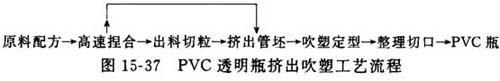 | 释义 | PVC透明瓶的挤出吹塑工艺 1.工艺流程见图15-37。