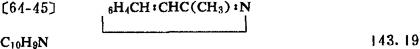 [2-甲基喹啉;邻甲基喹啉;2-Methyl quinoline] GW 61848 TW 84083 M.I.11,8055 性状 无色油状液体。有喹啉气味。露置空气中易变成红棕色。溶于醇、醚和三氯甲烷,不溶于水。mp -9--3℃;bp10 105-107℃/1.333kPa; 注意事项 该品吸入或与皮肤接触有害。避免吸入本品的蒸气,避免与眼睛及皮肤接触。应密封避光保存。