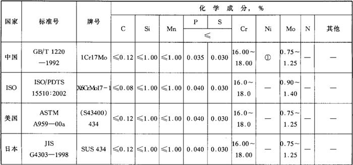 | 释义 | S11790 1Cr17Mo (1)化学成分 表3-105 国内外相应牌号及化学成分