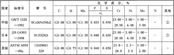 | 释义 | S22608 0Cr26Ni5Mo2 (1)化学成分 表3-87 国内外相应牌号及化学成分