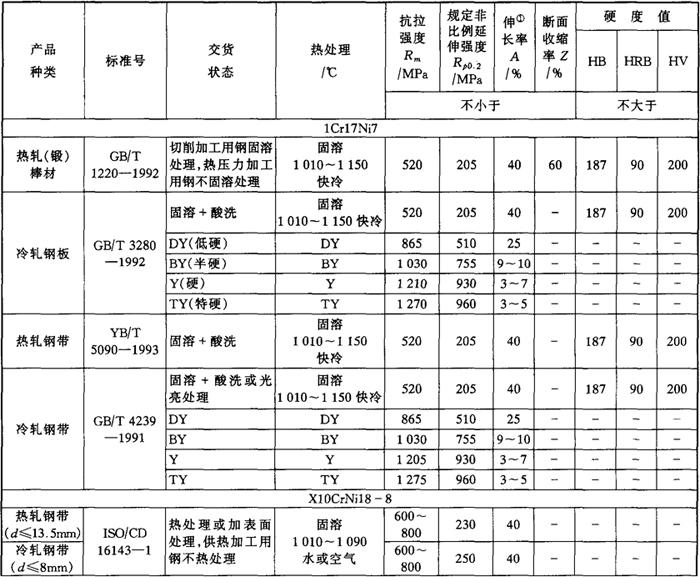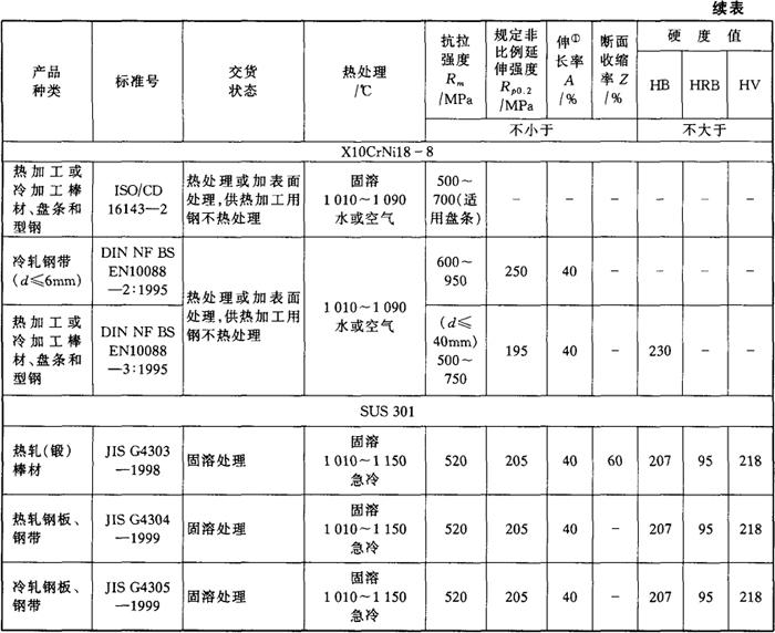 注:①ASTM标准试样标距为Lo=50mm。 (3)主要特性和用途 在弱介质中具有良好耐蚀性,经冷加工具有高强度。 用于制造铁道车辆和零部件、传送带、螺栓和螺母等。 |