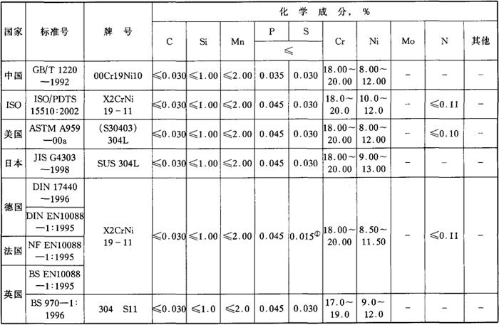 | 释义 | S30403 00Cr19Ni10 (1)化学成分 表3-17 国内外相应牌号及化学成分