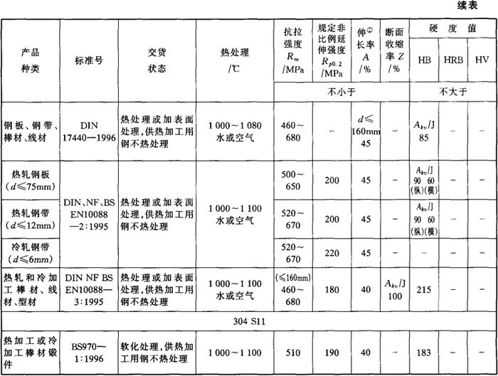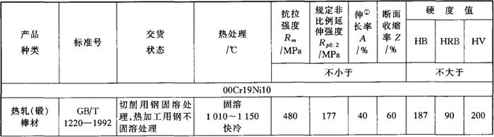 注:①棒材、盘条、型钢以及相应半成品,硫的最大含量为0.030%;用于切削加工的钢材,建议硫含量控制范围为0.015%~0.030%。 (2)力学性能 表3-18 主要产品热处理后的室温力学性能