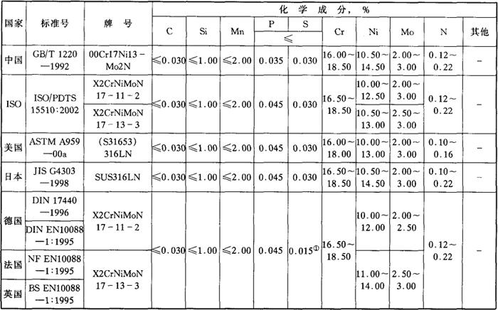 | 释义 | S31653 00Cr17Ni13Mo2N (1)化学成分 表3-41 国内外相应牌号及化学成分