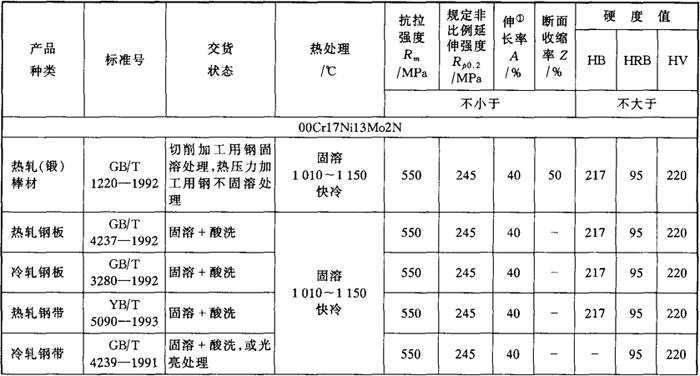注:①ASTM标准试样标距为Lo=50mm。 (3)主要特性和用途 在00Cr17Ni14Mo2钢的基础上,加入0.12%~0.22%的氮炼制而成。加入氮提高了钢的强度,降低了钢中镍量,而耐蚀性并不降低。 用于制造既要求耐腐蚀性(特别是耐晶间腐蚀性好),又要求具有一定强度的零部件。 |