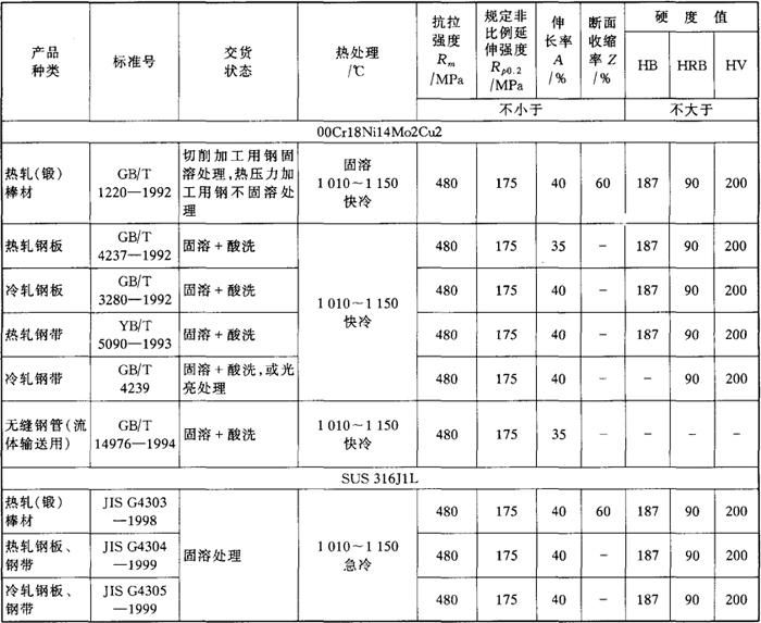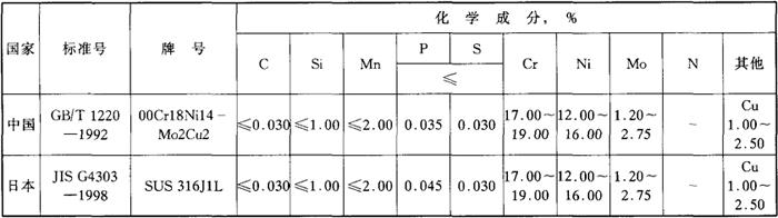 此钢相当于降低了0Cr18Ni12Mo2Cu2钢中的碳量以提高其焊后耐晶间腐蚀性能,提高了0Cr18Ni12Mo2Cu2钢中的镍量以获得钢的单一奥氏体组织。此钢在硫酸、磷酸及有机酸等介质中具有良好的耐蚀性和耐晶间腐蚀性能,尤其在稀、中等浓度的硫酸介质中具有较高的耐腐蚀性能。