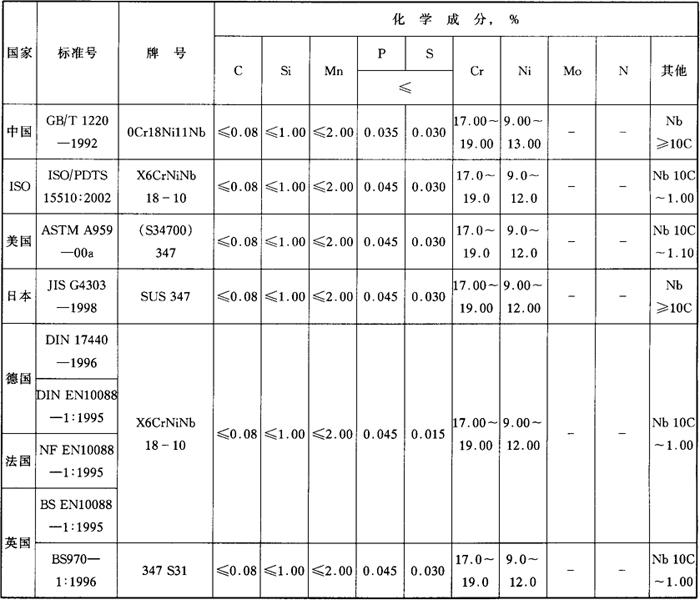 表3-61 国内外相应牌号及化学成分