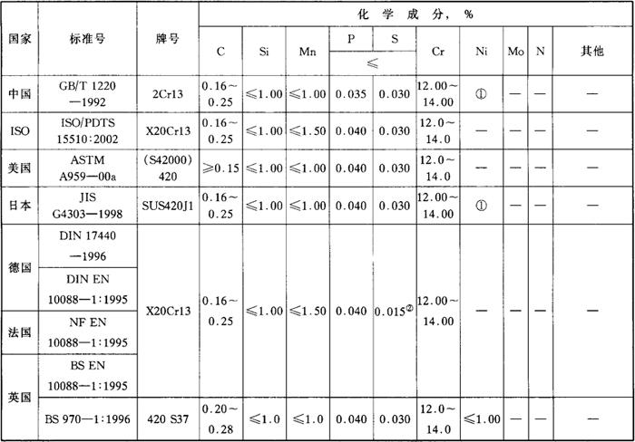 | 释义 | S42020 2Cr13 (1)化学成分 表3-131 国内外相应牌号及化学成分