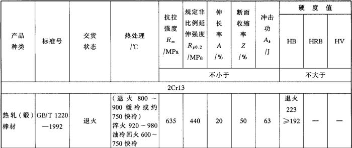 (3)主要特性和用途 此钢主要性能与1Cr13钢相似。由于含碳量比1Cr13钢稍高,其强度、硬度均比1Cr13钢稍高;而韧性、耐蚀性则稍低。 用于制造承受较高应力的零件,如汽轮机叶片、热油泵轴和轴套、叶轮、水压机阀片等,也广泛用于造纸工业和制造医用器械、家庭用具、餐具等。 |