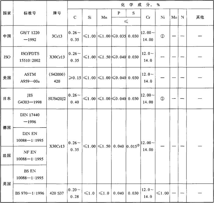 | 释义 | S42030 3Cr13 (1)化学成分 表3-133 国内外相应牌号及化学成分