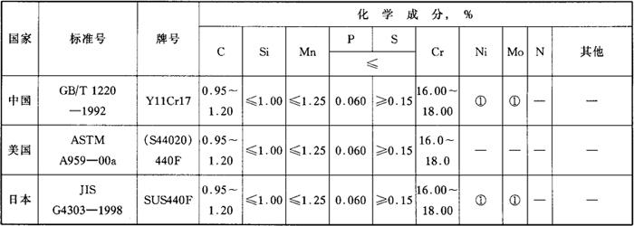 | 释义 | S44094 Y11Cr17 (1)化学成分 表3-151 国内外相应牌号及化学成分