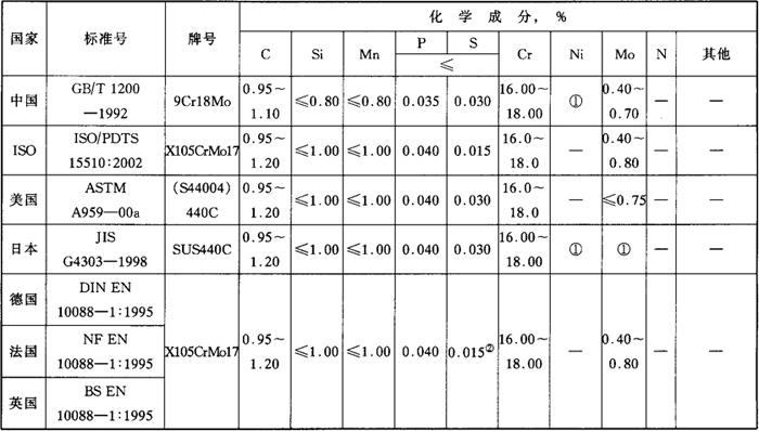 注:①允许含有≤0.60%的Ni,可加入≤0.75%的Mo。